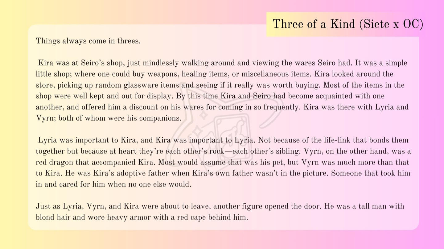 There will be a chance during the drafting/WIP stage to tell me if there is a plot-point you want me to change. This is the most crucial part of the writing part and would rather not have to rewrite an entire story, but there will be one more chance.